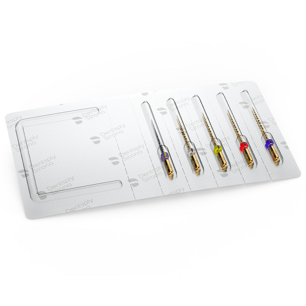 Roterende nikkel-titaniuminstrumenter, ProTaper Ultimate, 25 mm, assortert sett med filer til én sekvens, inneholder Slider, Shaper, F1, F2 og F3 filer.