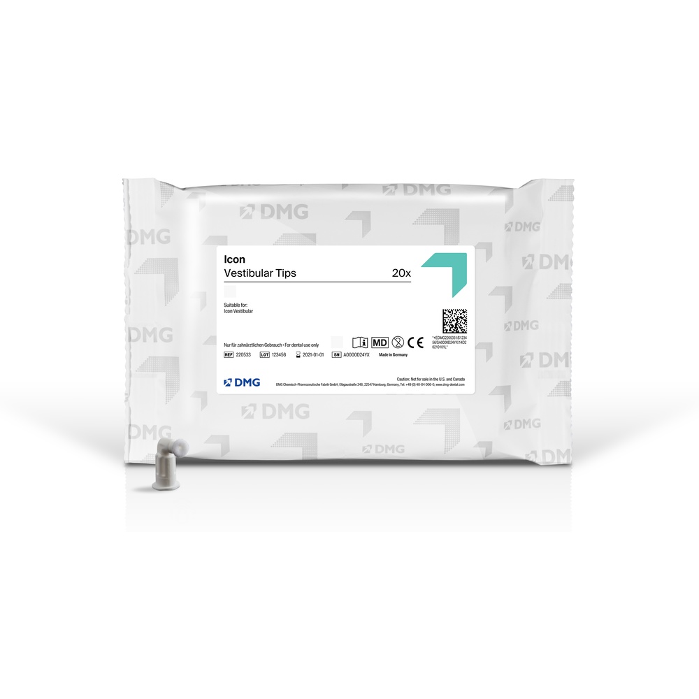 Spesialdesignedt vinklede applikatorspisser som brukes til presis påføring av Icon-materialer på glatte tannflater, spesielt til behandling av white spots etter ortodontisk behandling. De er kompatible med Icon Etch-, Dry- og Infiltrant-sprøyter og sikrer nøyaktig og kontrollert applikasjon på de vestibulære flatene av tennene.
