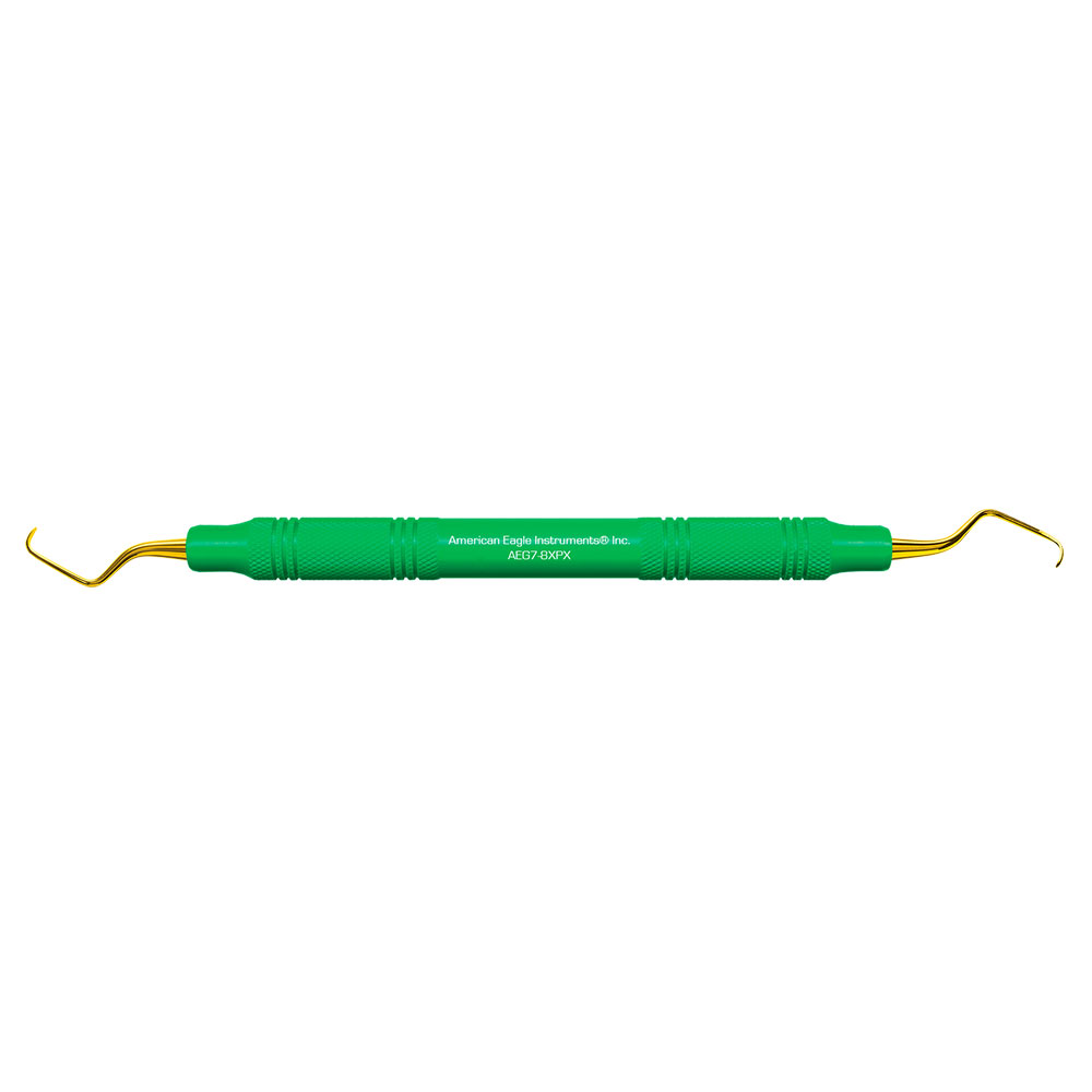Curette, Gracey Standard, 7-8, for bruk på molarer, med grønt skaft og gullfargede ender. Må IKKE slipes.