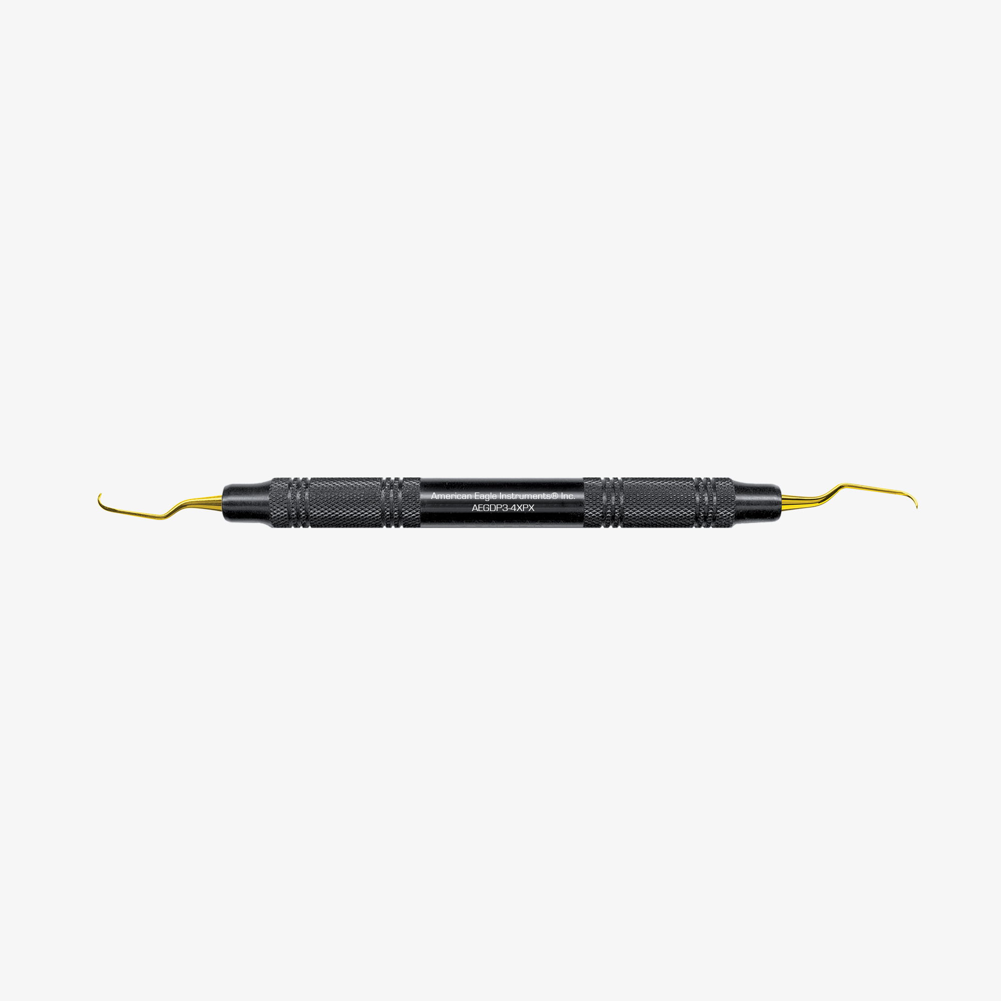 Gracey Deep Pocket-curette, lett vinklet for alle anteriore flater og hjørnetenner. Deep Pocket-instrumentene har en arbeidsdel som er 3 mm lengre. Ideell for dypere lommedybder.
