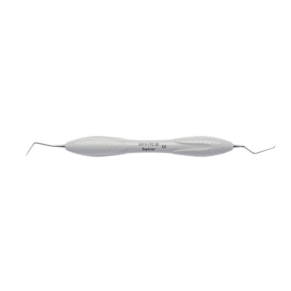 Explorers er allsidige instrumenter som brukes til å diagnostisere tannstein og karies, samt til å undersøke lommer, fyllinger og furkasjoner. Spesielt egnet for sondering av distale flater på bakre tenner. Sentralisert tupp (17C). Forlenget nedre skaft og “tilbakevirkende” blad (17C). ErgoSense håntak.