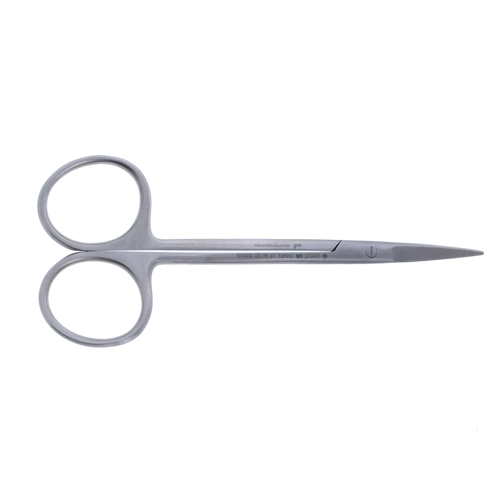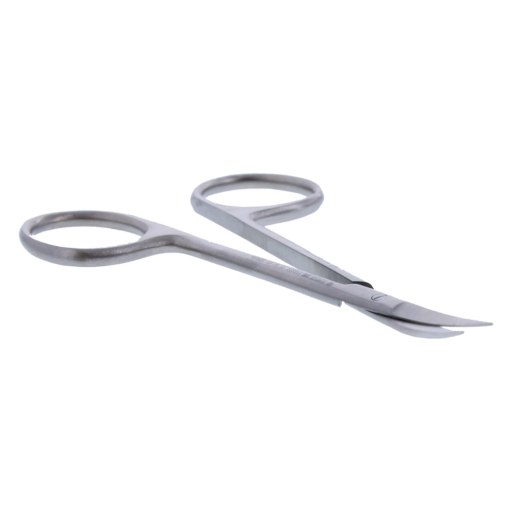 Gingivasaks for presis klipping og forming av gingiva. Brukes til å klippe bort overflødig eller skadet vev, forme tannkjøttet rundt tenner eller fyllinger, samt fjerne vev ved mindre kirurgiske inngrep. Kan brukes ved kronepreparering, der tannkjøttet må tilpasses for optimal kronepassform, under gingivaplastikk for estetiske eller funksjonelle formål, og i forbindelse med retraksjon før avtrykkstagning. Modell Iris, buet.