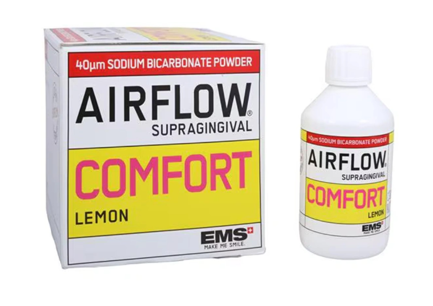 AIRFLOW® CLASSIC Comfort Sitron pulver brukes supragingivalt for å fjerne biofilm, misfarging og nydannet tannsten. Den har mindre kornstørrelse, kun 40µm som gir en skånsom behandling.