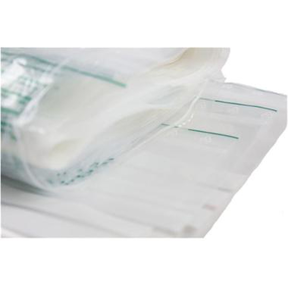 Plastposer med lynlås, 150 x 200 mm, med skrivefelt, i LDPE-plast (polyetylen med lav tetthet) som er myk og fleksibel. Tykkelse 50 my.