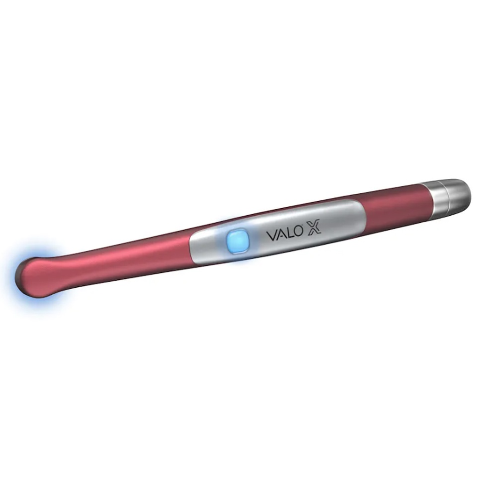 1 x VALO X LED-herdelampe, 1 x Diffusorlinse, 2 x Oppladbare batterier, 1 x Batterilader, 1 x Blålys-blokkerende skjerm, 1 x Prøvepakke med beskyttelseshylser, 1 x Strømforsyning (for batterilader eller ledningsadapter, NB! Ledningsadapter er IKKE